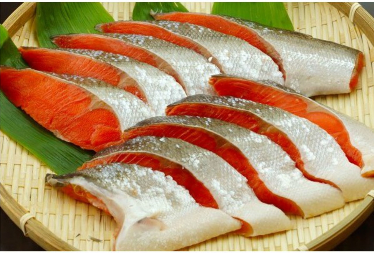 紅鮭切身 半身(甘塩)小 500~600g約8切。北海道物産展、一番人気の看板商品です。